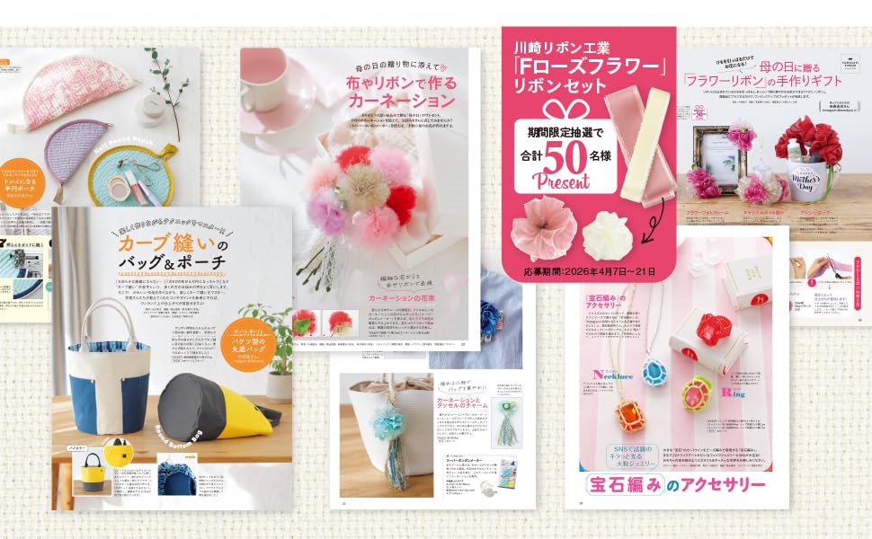 ★カーブ縫いのテクニック、母の日のカーネーション、 SNSで話題の宝石編みなど、今すぐに作りたいものがいっぱい