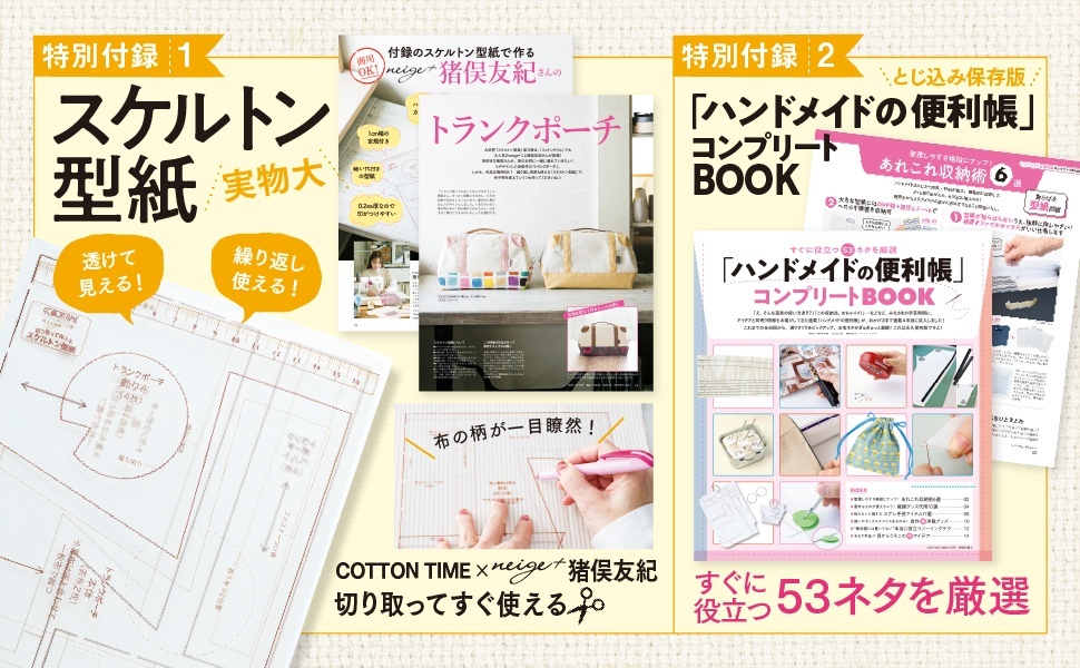 ◎ ★豪華2大付録 第1付録/透けて見える!実物大スケルトン型紙 第2付録/「ハンドメイドの便利帳」コンプリートBOOK