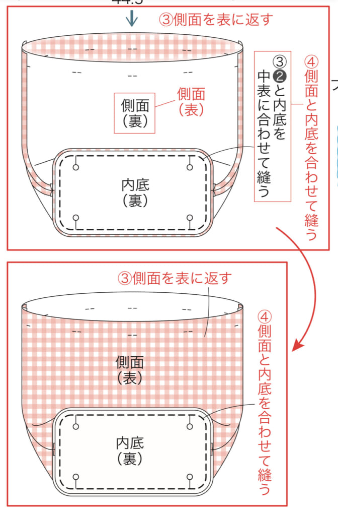 COTTONTIME 11月号(NO.147) 50ページ「もこもこトート」作り方 「3 表袋を作ります ②および③」の 中央からの 持ち手つけ位置の表記に誤りがありました。 大変申し訳ございません。お詫びして訂正させていただきます。 【誤】 【正】