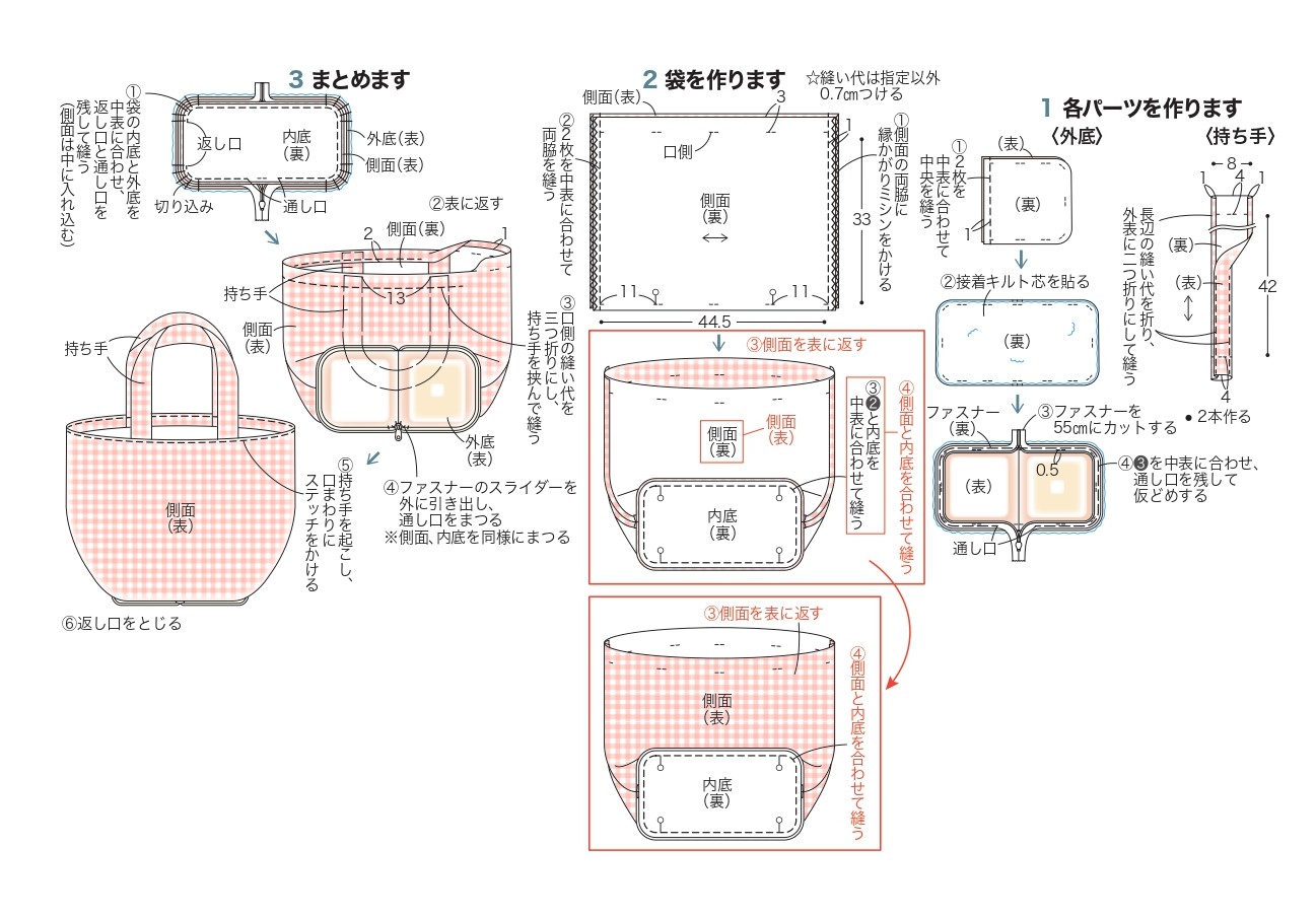 バッグと小物の基礎Book こちらに掲載の各種型紙には、縫い代は含まれておりません。 各型紙記載の( )内の数字を参照し、縫い代をつけてご使用ください。 型紙の縫い代に関する表記に分かりづらい点がございましたこと、 お詫びさせていただきます。