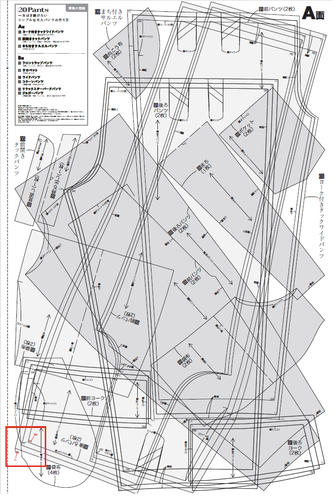 実物大型紙A面「05前開きタックパンツ」の型紙のサイズ記載に誤りがありました。